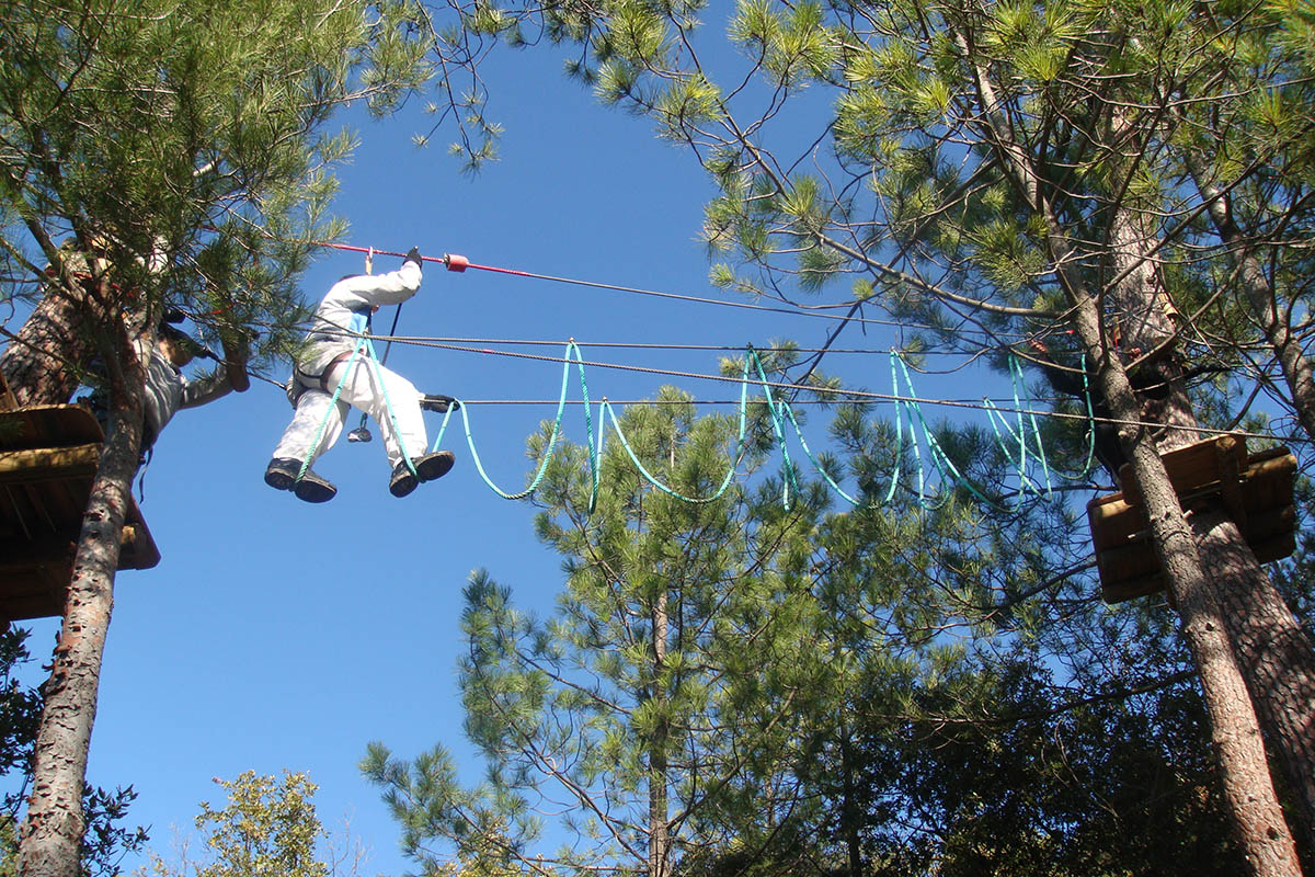 Deux parcours sont accessibles dès 7 ans avec la présence obligatoire d’un adulte au sol jusqu’à 16 ans. Un parcours vert sans réel effort, vous passez de 1,5 m à 12 m ! Effet garanti ! Accessible bien sûr pour les enfants et aussi pour les adultes. Le parcours bleu est plus difficile, la plus grande tyrolienne de Grasse (100 mêtres) et un panorama sur toute la Côte d'Azur à vous couper le souffle .